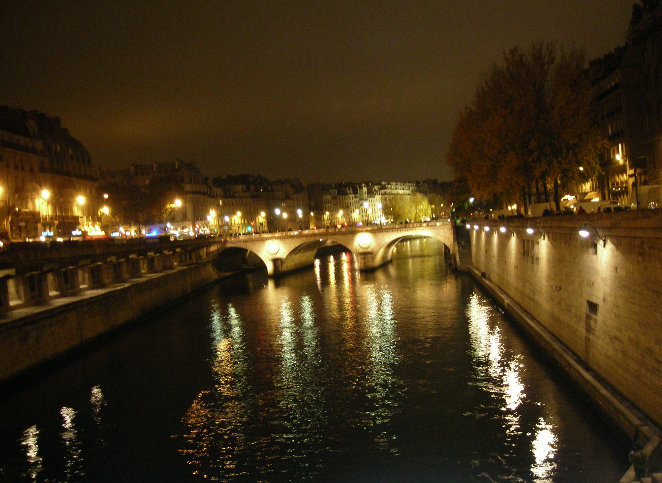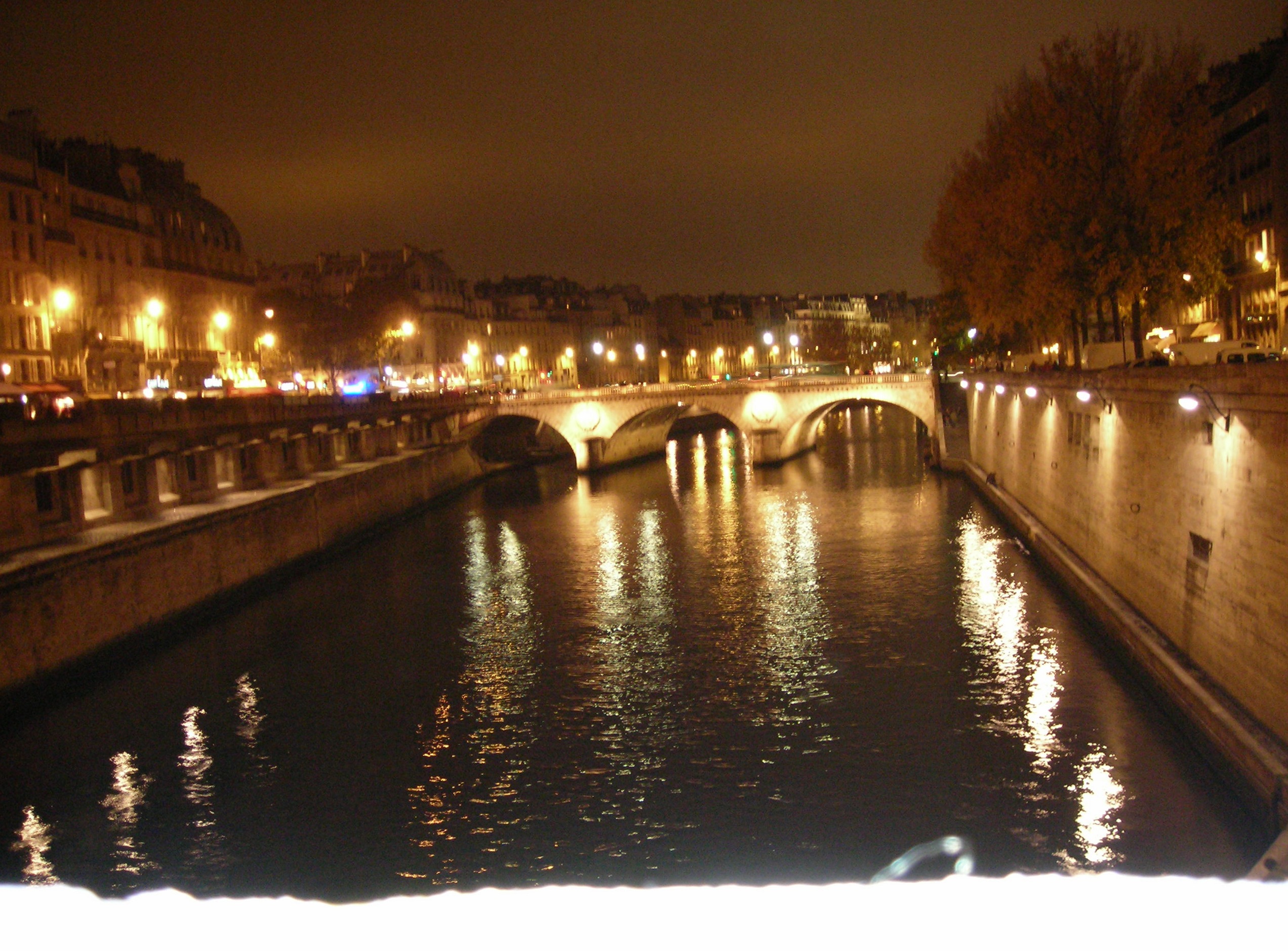 El cierre del día fue largo y de noche. Bajamos hasta el Sena por las callejuelas del Marais, salimos al muelle a la altura del Pont d’Arcole, y desde ahí caminamos un buen rato río arriba: la Île de la Cité con Notre-Dame iluminada de naranja, los Pont au Change, Pont Neuf, Pont des Arts que cruzamos para mirar atrás y volver a cruzar. Al otro lado, la cúpula iluminada de Les Invalides flotaba sobre los tejados como una luna baja. Esa noche entendimos que París no es de un sitio: es del Sena que los une todos.