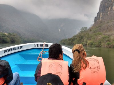 Jueves. Llueve. Es San Emeterio. Día gran de fiestas de invierno de Calahorra. El plan principal de hoy es navegar el río Grijalva en el parque natural del Cañón del Sumidero.