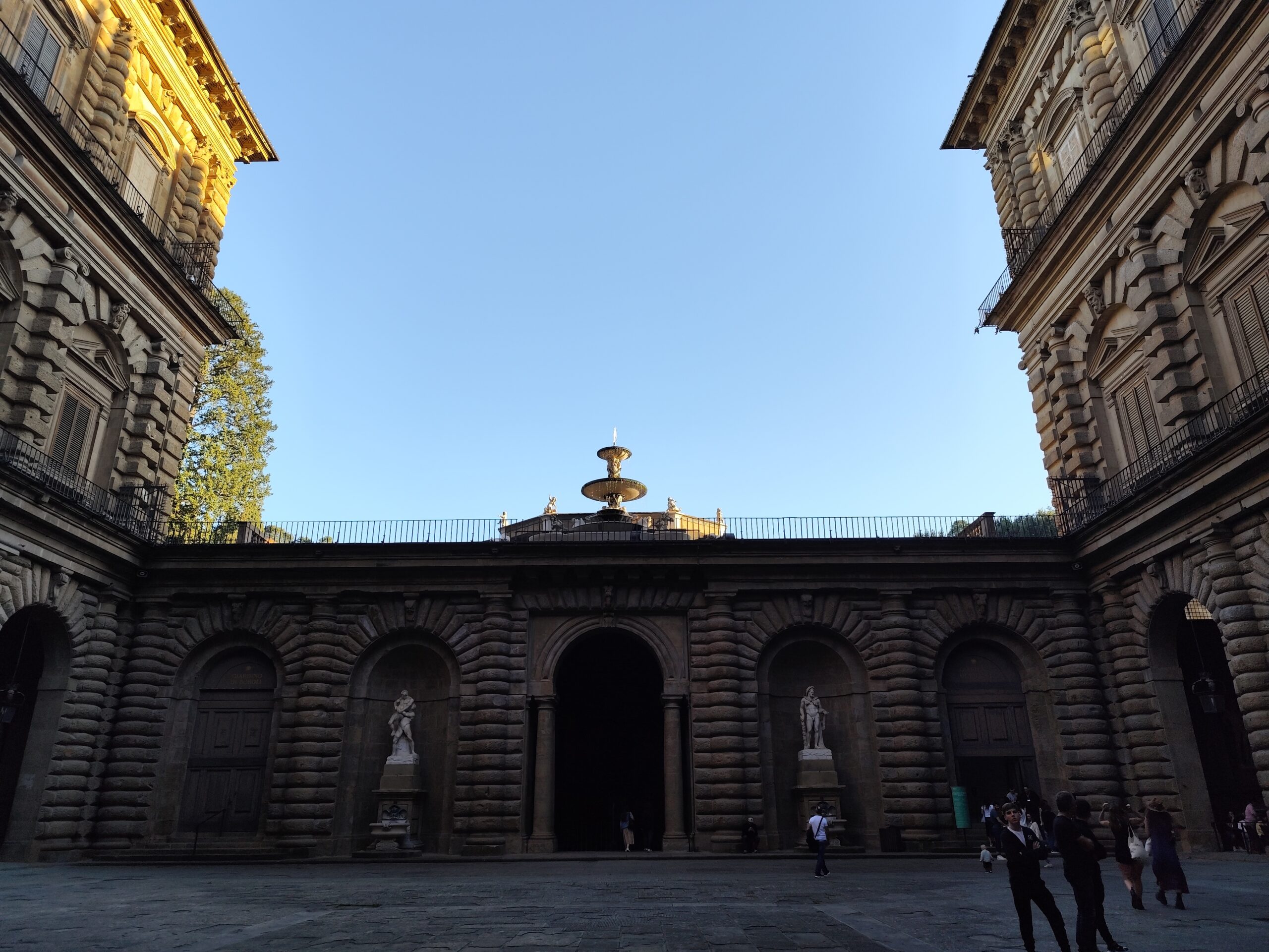 El Palazzo Pitti, en la margen sur del Arno, fue encargado en 1458 por el banquero Luca Pitti con la intención explícita de rivalizar en tamaño e influencia con los Medici, entonces la familia más poderosa de Florencia. La fachada maciza y austera responde tanto al espíritu defensivo de la época como a esa ambición. La ironía es sabrosa: casi un siglo después, en 1549, fueron los propios Medici quienes compraron el palacio. Eleonora de Toledo, esposa de Cosme I, lo adquirió para convertirlo en la nueva residencia principal de la familia, y los Medici lo ampliaron y añadieron detrás los jardines de Boboli, uno de los ejemplos más importantes de jardín renacentista italiano.