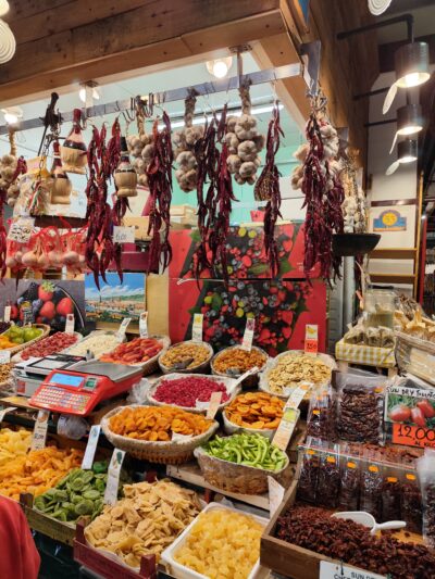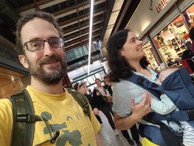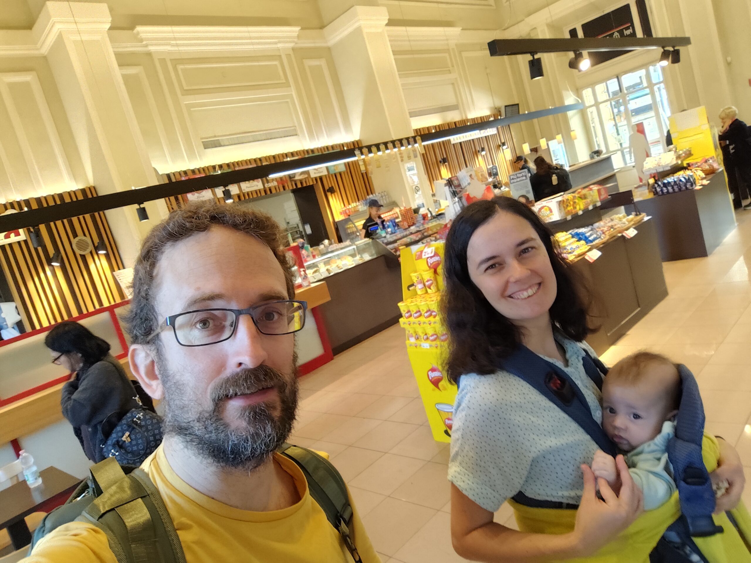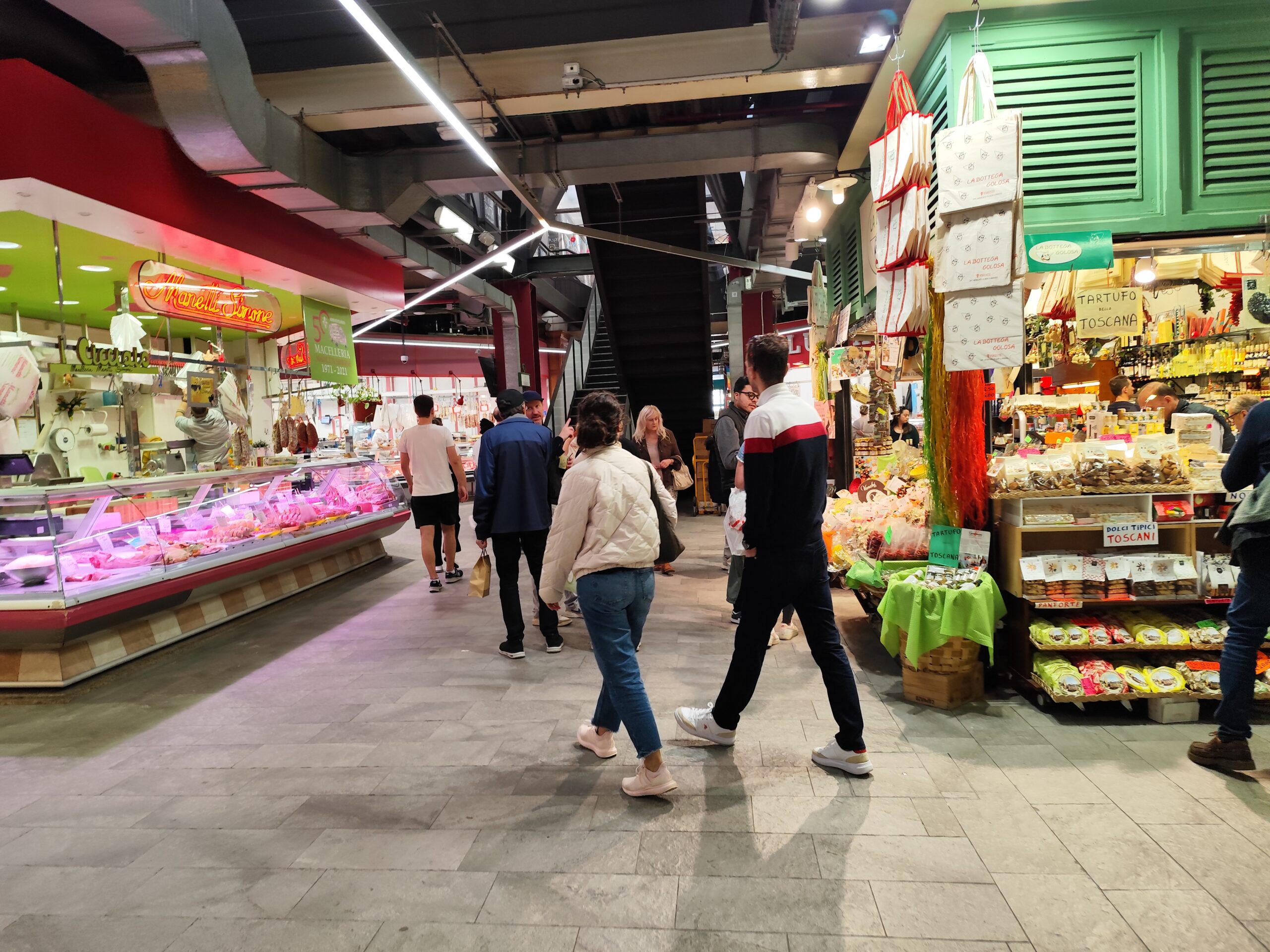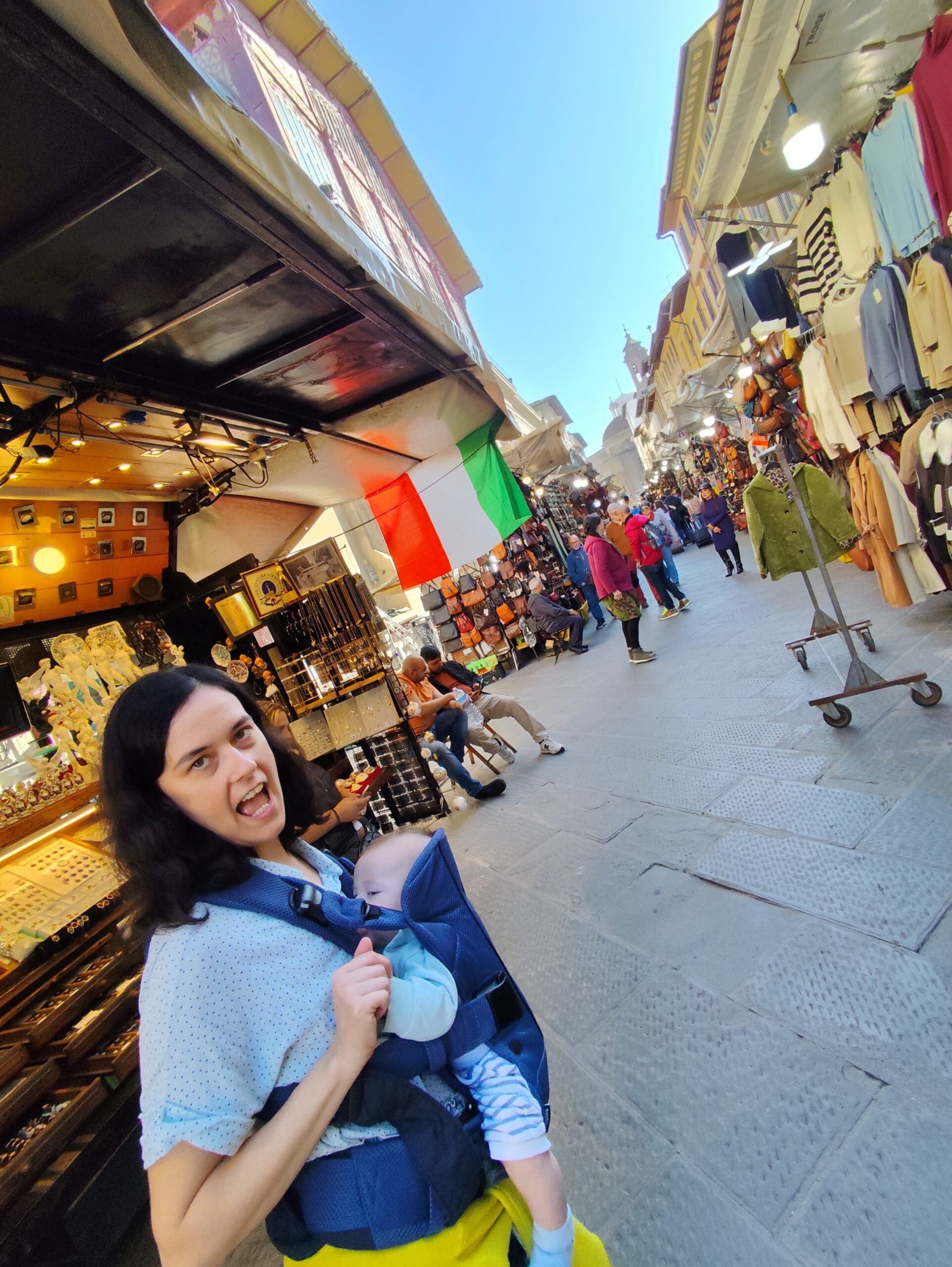 La mañana empezó tranquila en Livorno. Mientras Nagore tendía la colada en casa, yo me acerqué al supermercado a por desayuno y algunas cosas. Se acerca Halloween y las estanterías ya estaban llenas de calabazas, dulces y decoración de temporada. Volvimos a desayunar todos juntos, preparamos a Julen y enfilamos hacia la parada de Magenta para coger el bus. De camino dimos un paseo por Livorno — a estas alturas ya de memoria — y en la tienda de la estación, mientras esperábamos el tren, estuvimos un rato entretenidos viendo cosas de Super Mario en el rincón de juguetes. Café para el camino y al regional rumbo a Firenze Santa Maria Novella. Una vez más, el peque cabe tumbado a lo largo de los asientos del tren. Pequeño lujo parental.
