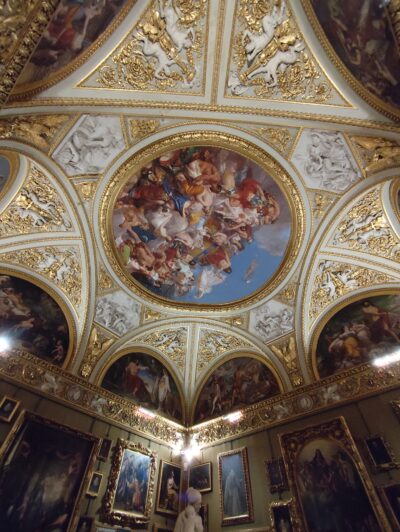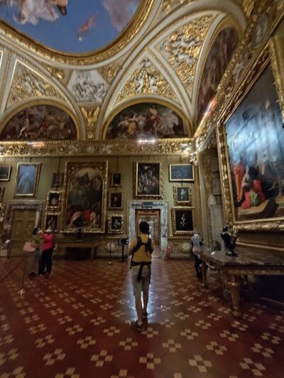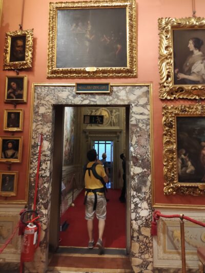 El Pitti, desde fuera, parece más una fortaleza adusta que una residencia principesca. Pero por dentro — y, sobre todo, por detrás — la cosa cambia mucho. En Inferno de Dan Brown, Langdon hace parte de su carrera por aquí, y un cuadro del museo juega su papel en la trama. Dentro, como en cualquier palacio Medici que se precie, hay de todo: pinturas, tapices, salas enormes. Volvió a llamarme la atención la sala de los mapas — igual que en el Vecchio — y reconozco que a estas alturas del viaje ya las estaba fichando como «mis salas favoritas».