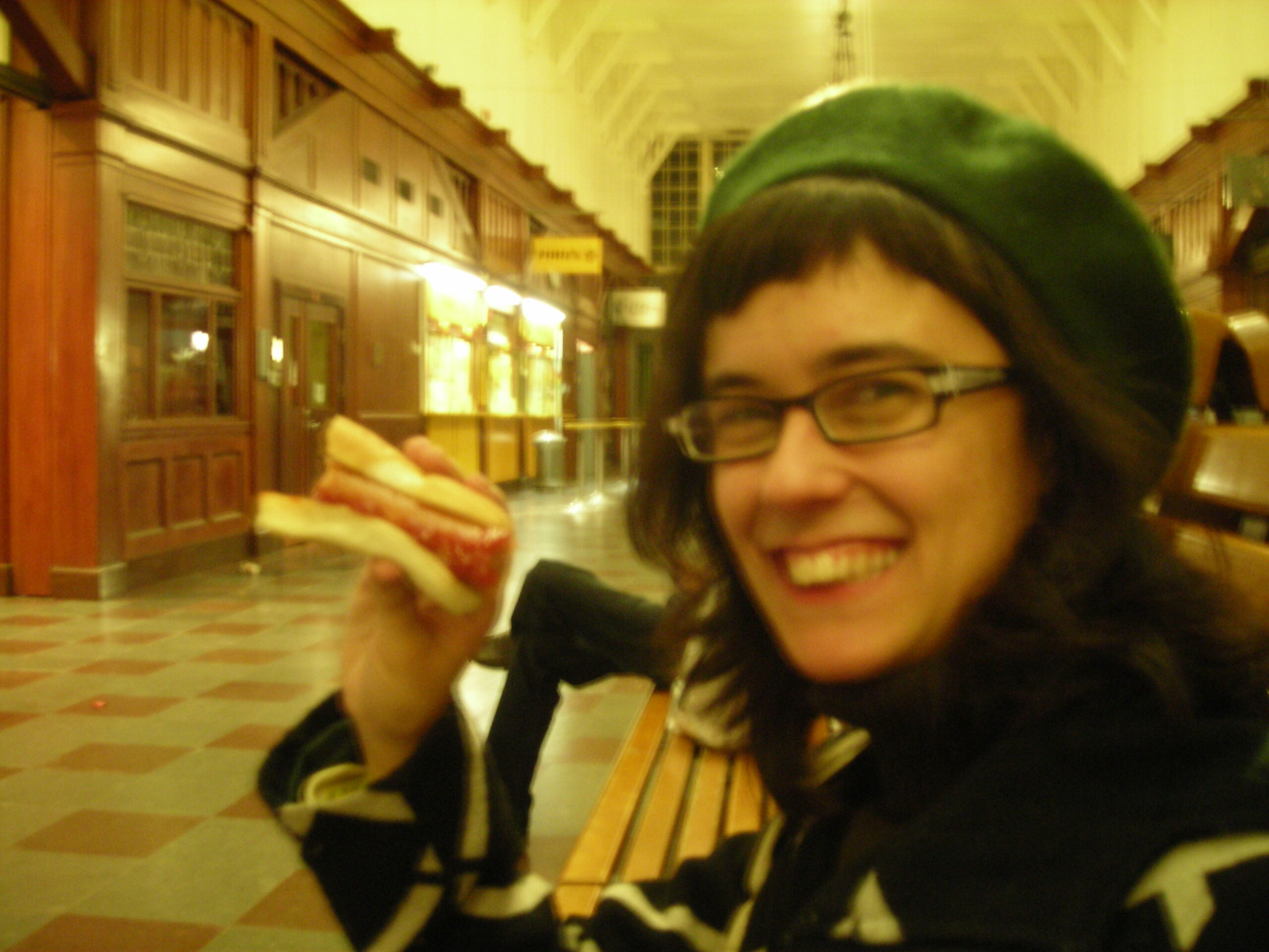 Un hotelito pequeño, de recepción pequeña, de pasillo pequeño. La habitación tenía una cama doble del tipo nido y poco más. Salimos a cenar a la estación central de Gotemburgo — Göteborgs Centralstation (Centralen) con sus paneles de madera oscura en las paredes y el suelo de baldosas cuadriculadas rojas y beige. Nagore cenó un perrito sueco — posiblemente con räksallad (ensaladilla de gambas) y en seguida de vuelta a casa que eran más de las 23:30. Caímos pronto, con ese cansancio bueno del primer día de viaje, y el verdadero Gotemburgo se quedó para la mañana siguiente.