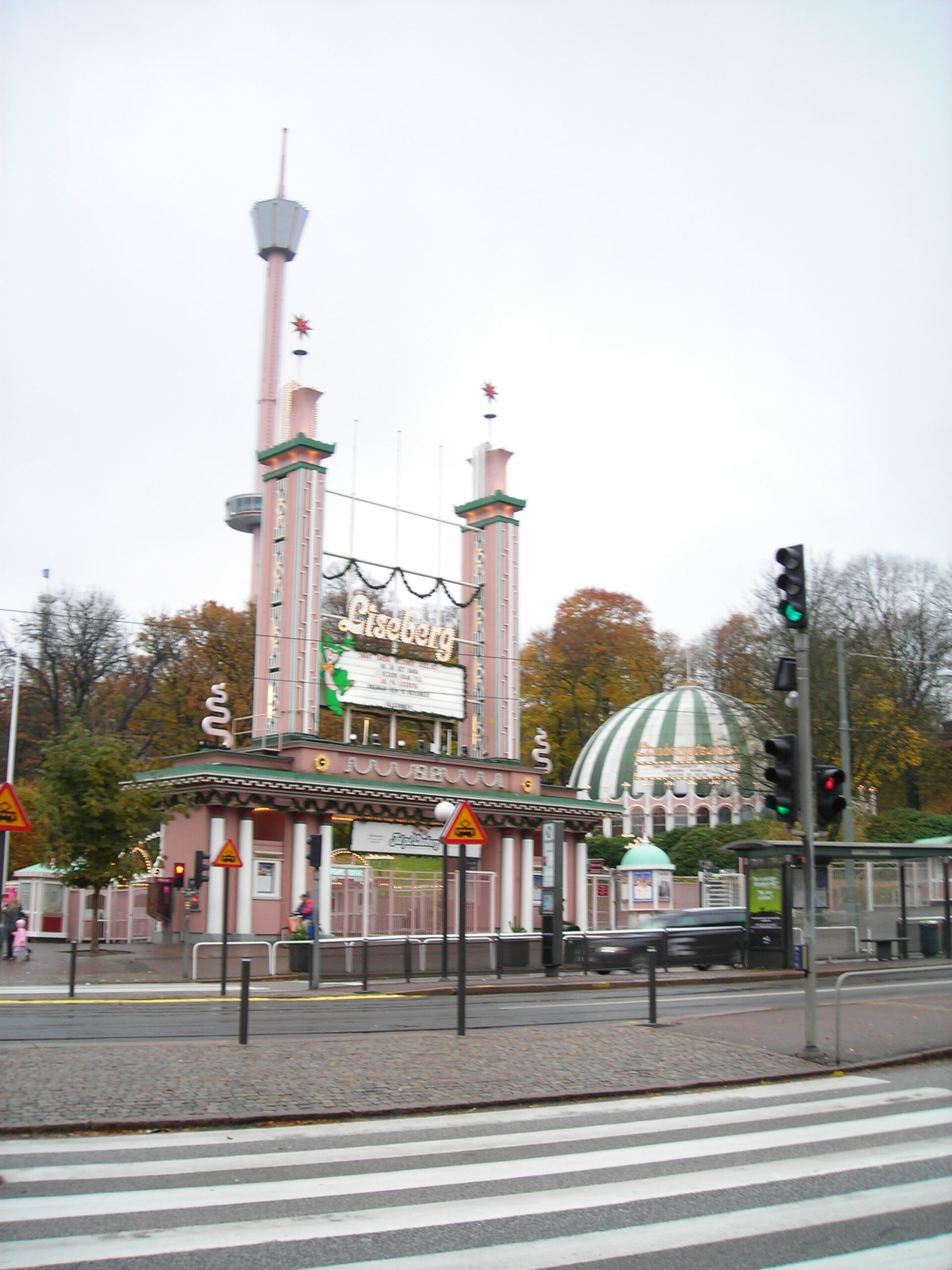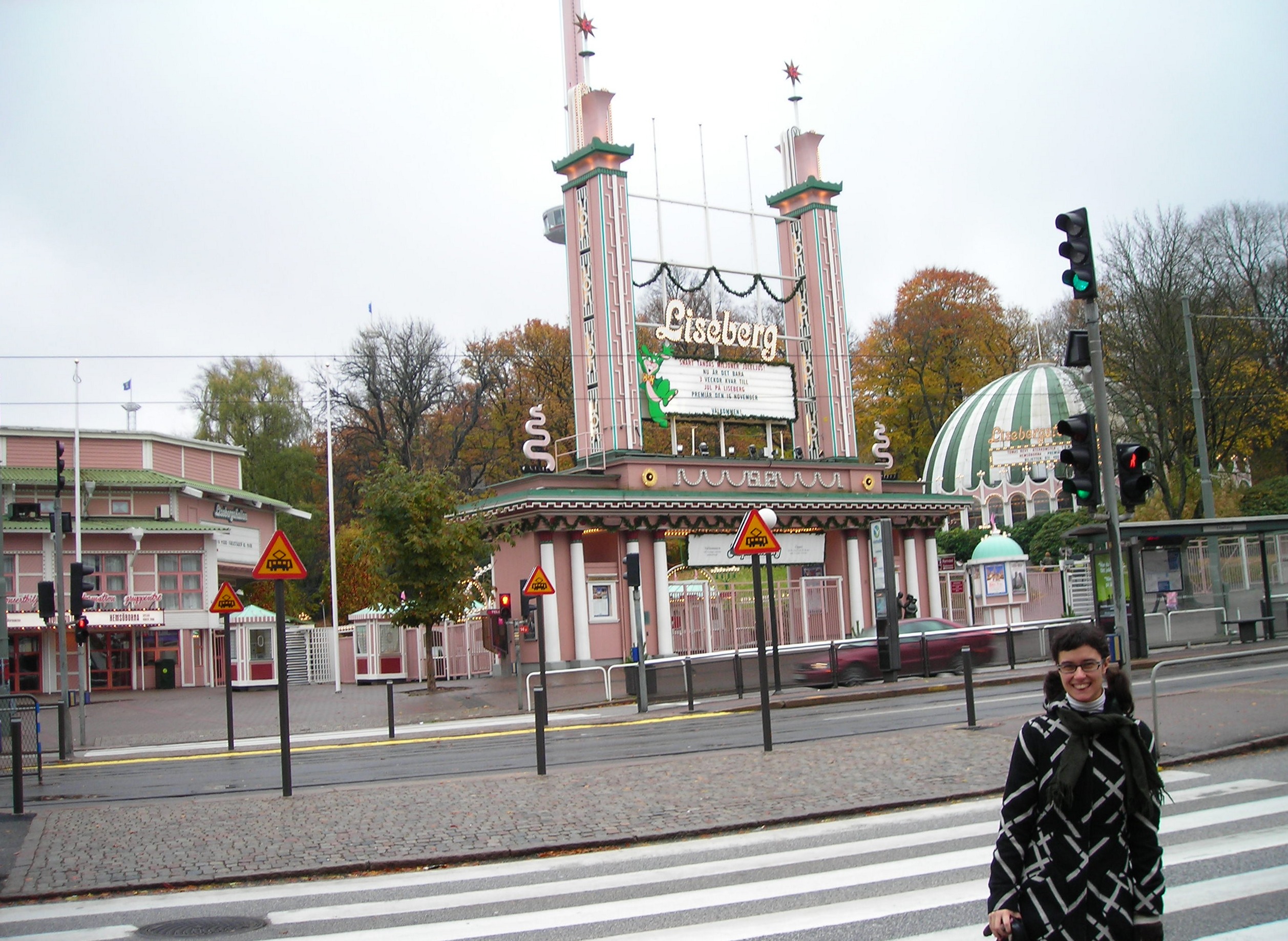 Nuestra primera parada fue Liseberg, el parque de atracciones más grande de Escandinavia y una de las cosas que Gotemburgo saca en todos los folletos. Abierto en 1923, es el equivalente sueco del Tivoli de Copenhague, de hecho, años más tarde, cuando íbamos al Tivoli propiamente dicho, todavía nos acordaríamos de esta mañana. Lo que no sabíamos al ir es que Liseberg cierra en temporada baja: entre finales de octubre y finales de noviembre solo abren fines de semana con el *Halloweenäventyr*, y los lunes están literalmente vallados.