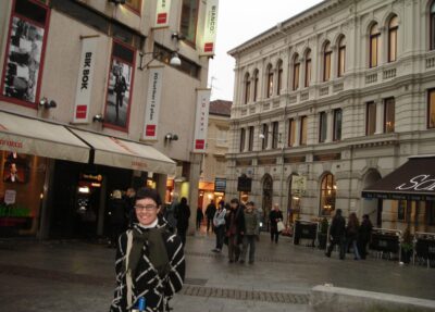 Al salir, Nagore se quedó con un cartel luminoso en una de las plazas peatonales del centro. Resulta que no era ninguna librería — era BIK BOK, una cadena noruega de moda joven muy presente en la Escandinavia de los 2000. .