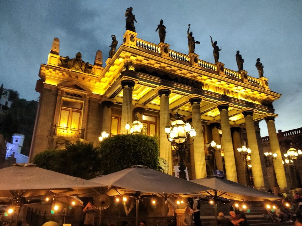 Y después, poco más. Pasear, disfrutar de las calles, preciosamente iluminadas. Pasar por delante del Teatro Juárez o la Basílica y ver algunas tiendas. Estábamos cansados así que fuimos a comprar algo para cenar a una tiendecita cerca del callejón del beso y ya de vuelta para arriba. El que puso el nombre de bajada de Tecolote, se conoce que no la tenía que subir. Además nos perdimos un poco al final. Pero bueno, llegamos sanos y salvos. Conocimos a Amina, nuestra compañero de piso ( roomie dicen por aquí). De Melbourne. Estuvimos un rato tratando de adivinar que se refería a Marbella cuando hablaba de la ciudad española que conocía además de Barcelona. Sopa – aguada -, Sense8 y a dormir.
