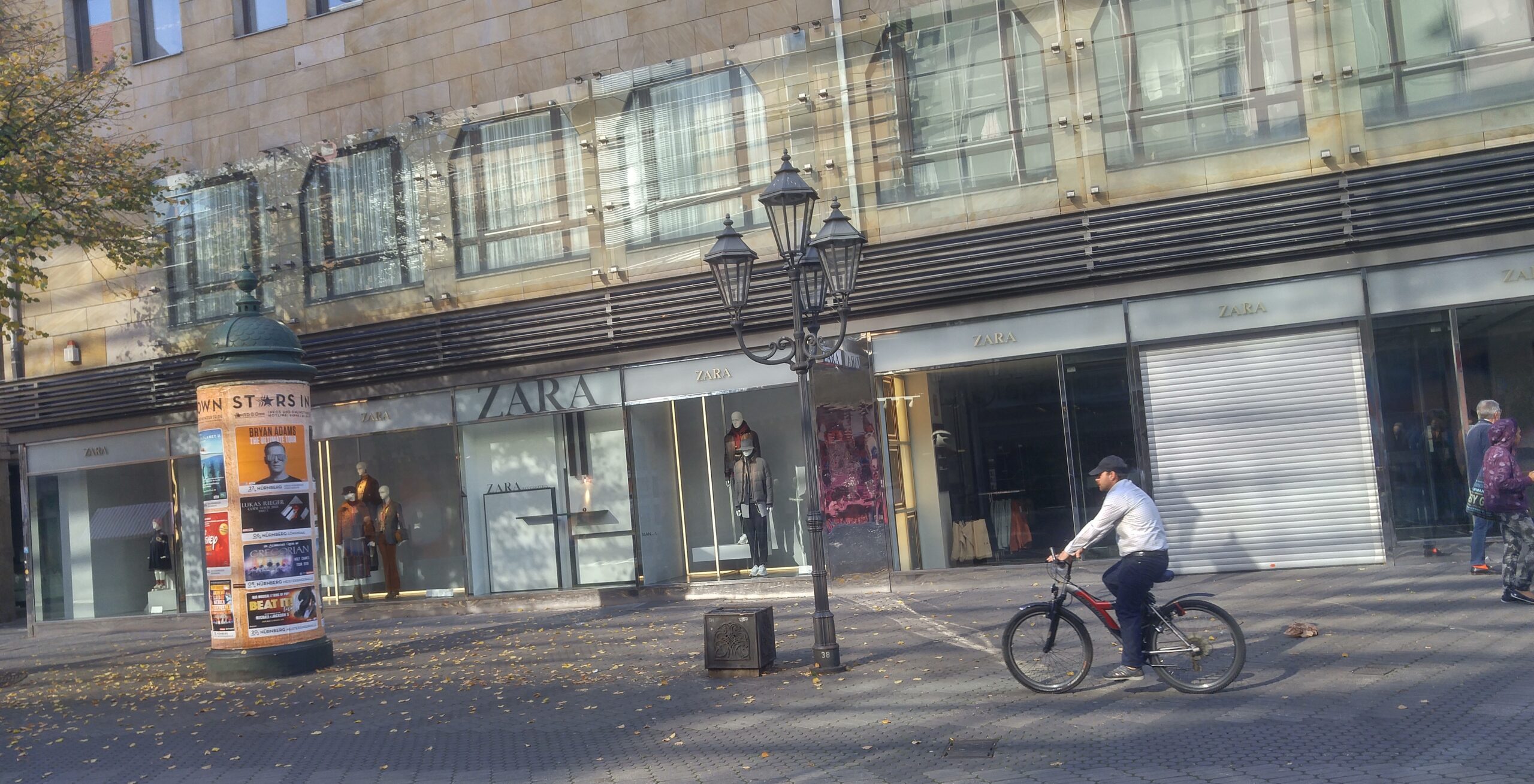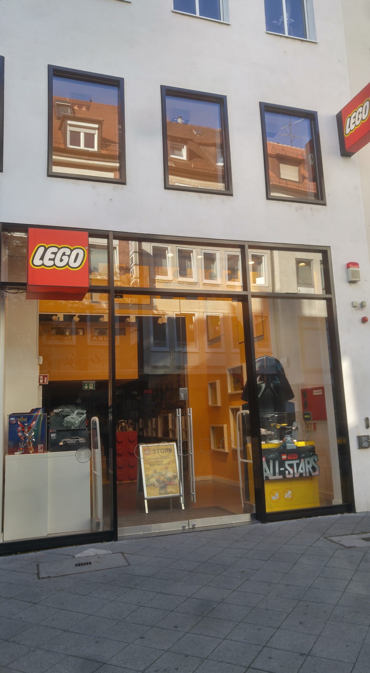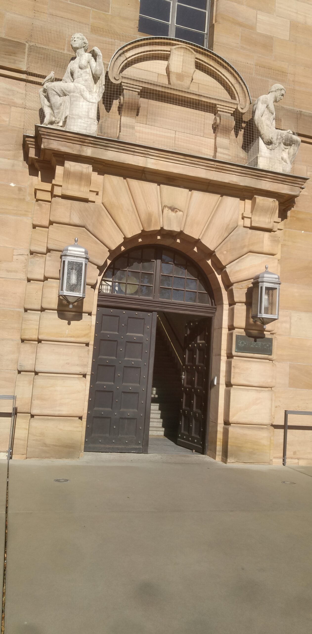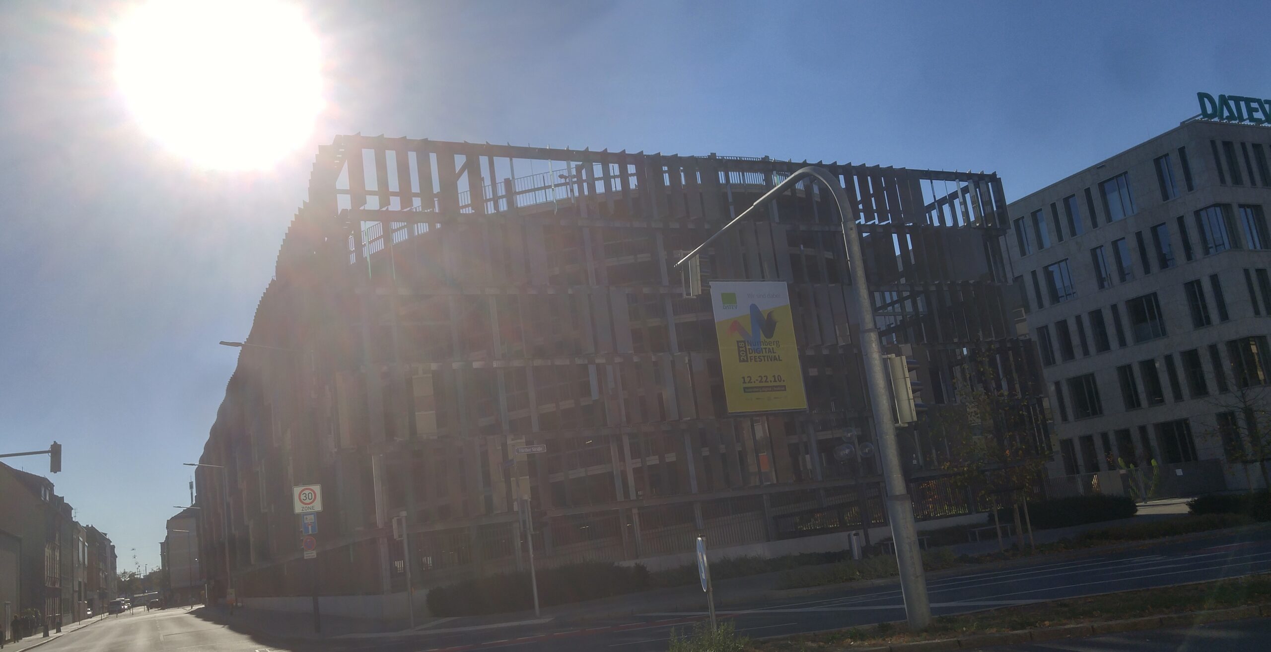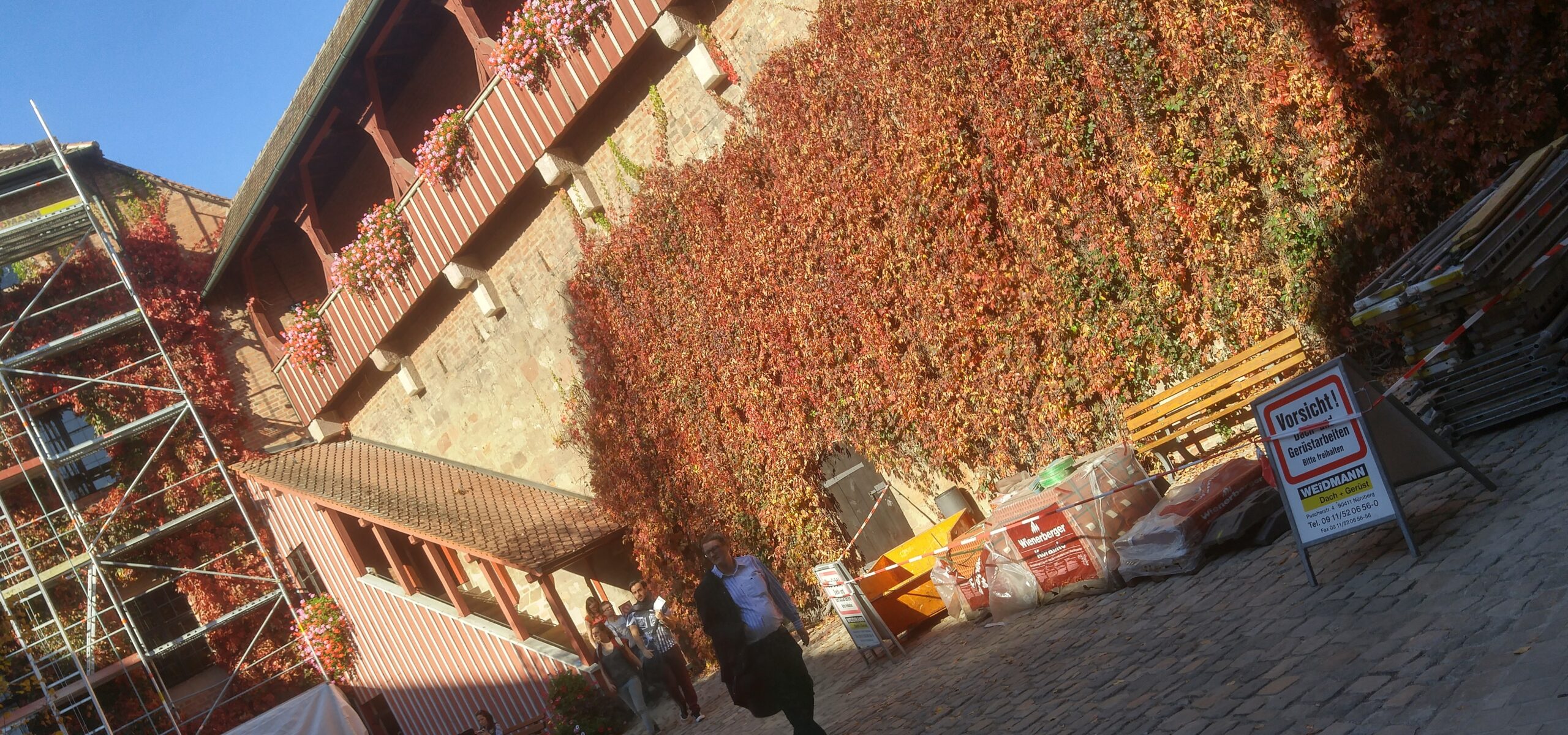 El edificio único acabado. Núremberg fue destruida en un 90 % por los bombardeos aliados de enero y febrero de 1945. Tras la guerra se decidió reconstruir el casco antiguo en su forma original, edificio por edificio, con piedra arenisca rosa de la cantera local. La excepción es la fachada del Schauspielhaus —el teatro municipal— que aparentemente quedó prácticamente intacta y fue uno de los pocos edificios públicos que NO necesitó reconstrucción. Vittorio nos lo señaló como anécdota y como prueba de la fragilidad del bombardeo: dos calles por allá, el edificio está entero; dos calles por aquí, todo era ruina. Esa arbitrariedad de la guerra es una de las cosas que más impresionan caminando por una ciudad reconstruida.